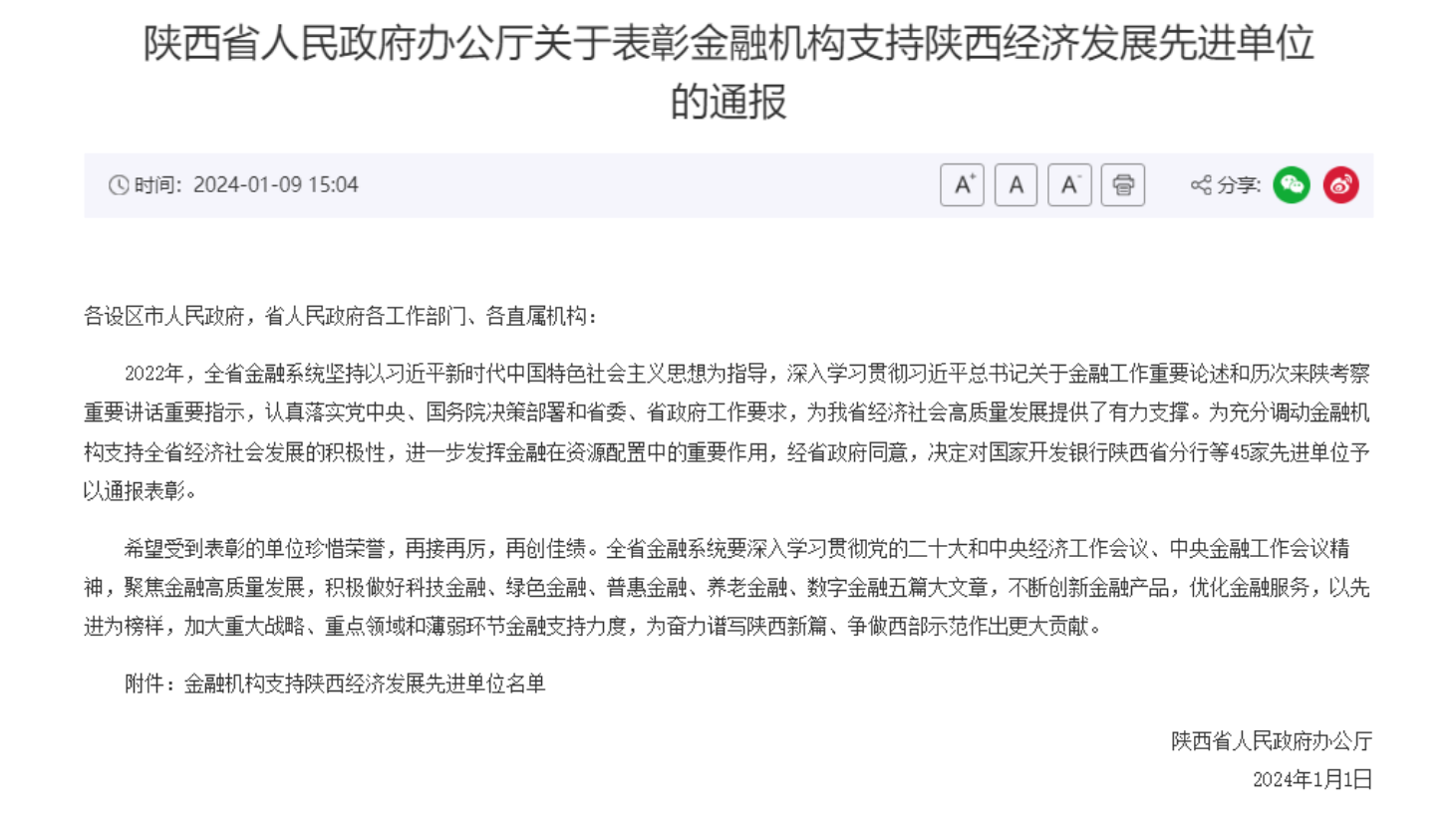 喜报!点点官网获评“金融机构支持陕西经济发展先进单位”